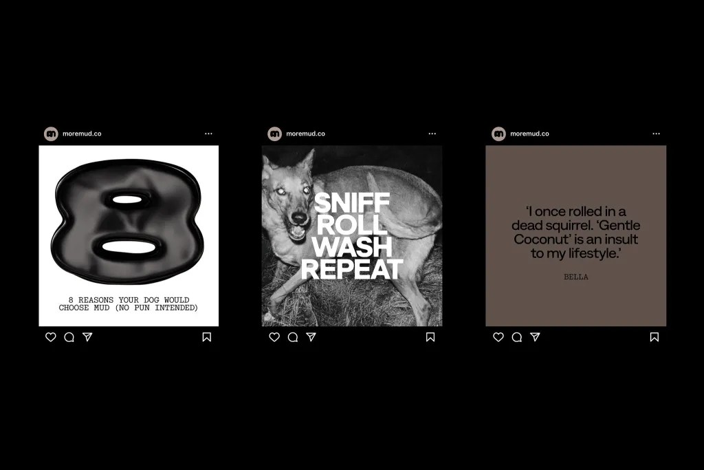 From a design standpoint, Mud is a quiet protest. The identity is stripped-down and spare, more Berghain than BarkBox. The visual language flirts with the antiseptic, but in doing so, makes space for its own contrast: this isn’t clean design for the sake of cleanliness; it’s restraint in service of the message. There’s something elegant about the refusal to indulge in dog-centric whimsy. No bones. No paw prints. No saccharine serif fonts or golden retrievers smiling in soft light. Just black, white, muddy browns, and a firm understanding that function — real, biologically appropriate function — can be its own form of aesthetic honesty.